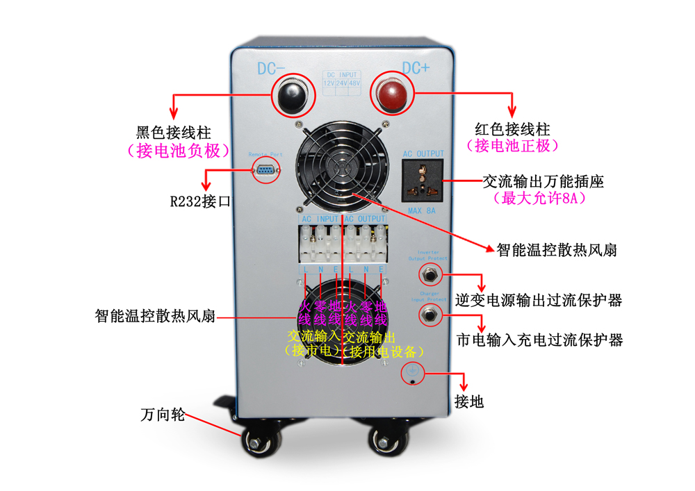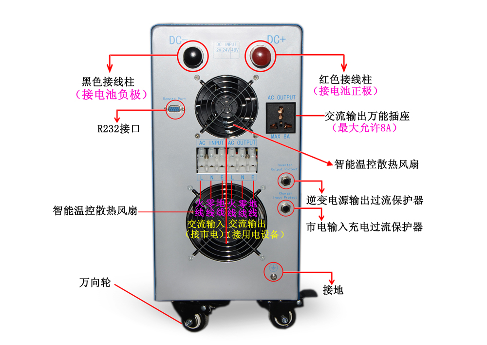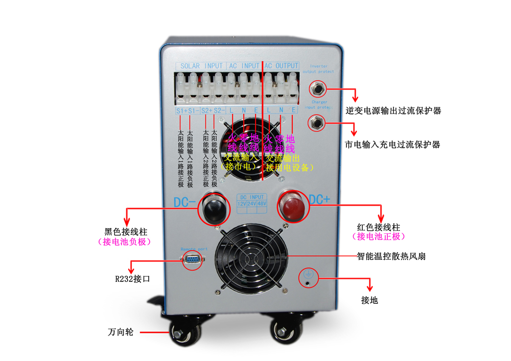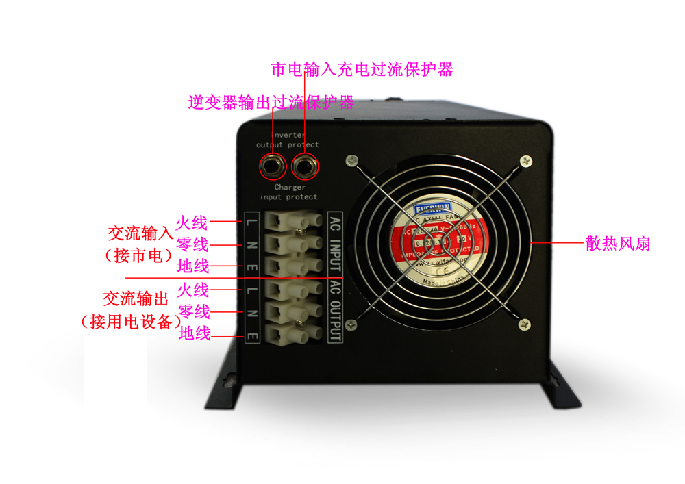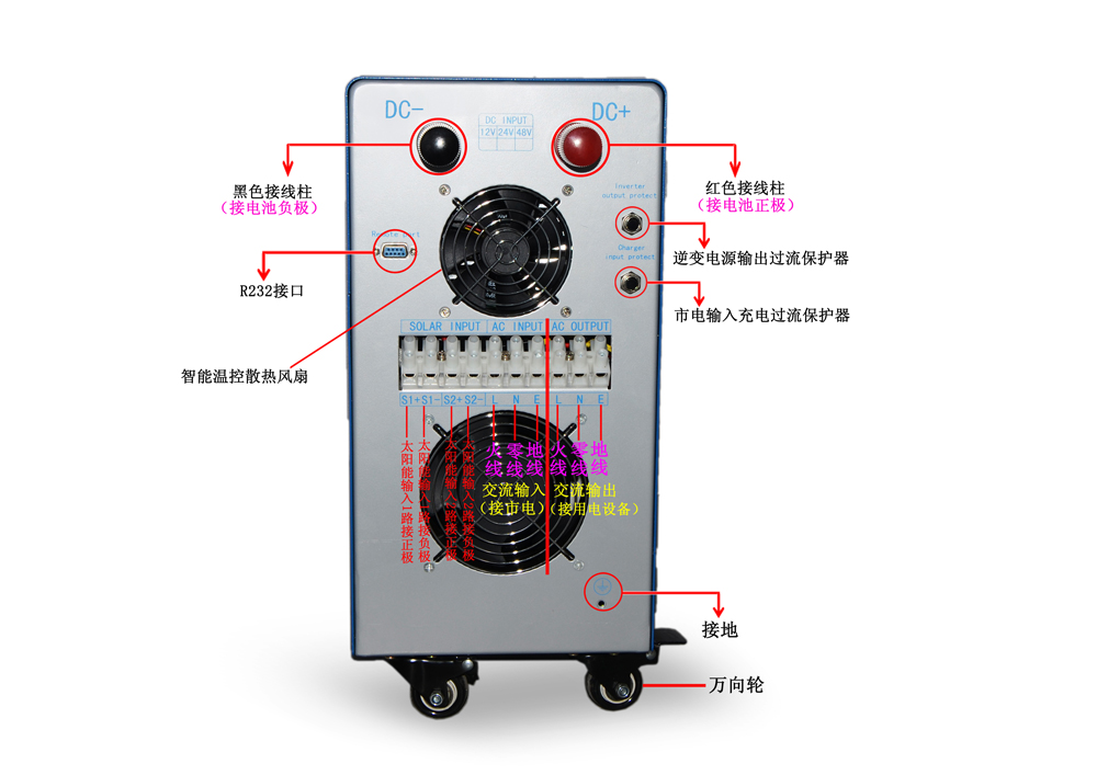4-6KW逆控一体机背面指示示意图